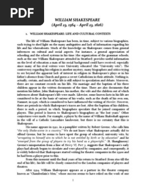 W I L L I A M S H A K E S P E A R E A P R I L 2 3 1 5 6 4 A P R I L 2 3 1 6 1 6 William Shakespeare Plays