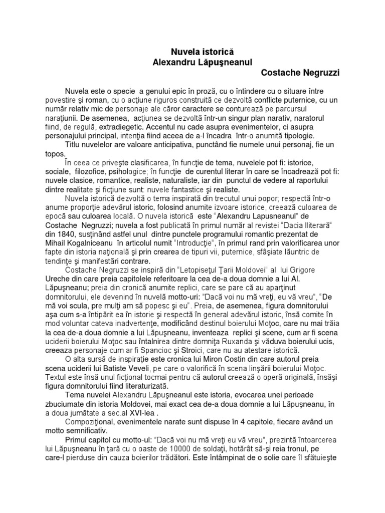 Referat Alexandru Lapusneanul De Costache Negruzzi Nuvela Istorica Romana 132079