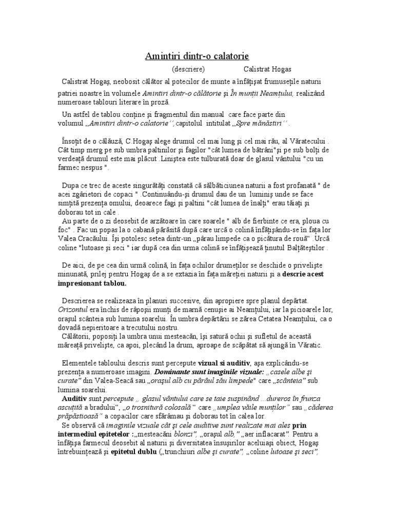Calistrat Hogas Amintiri Dintr O Calatorie Www E Referat