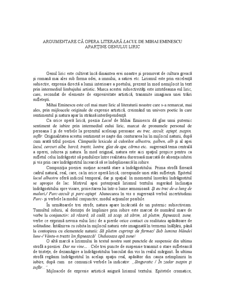 Argumentarea Genul Liric Lacul Doc
