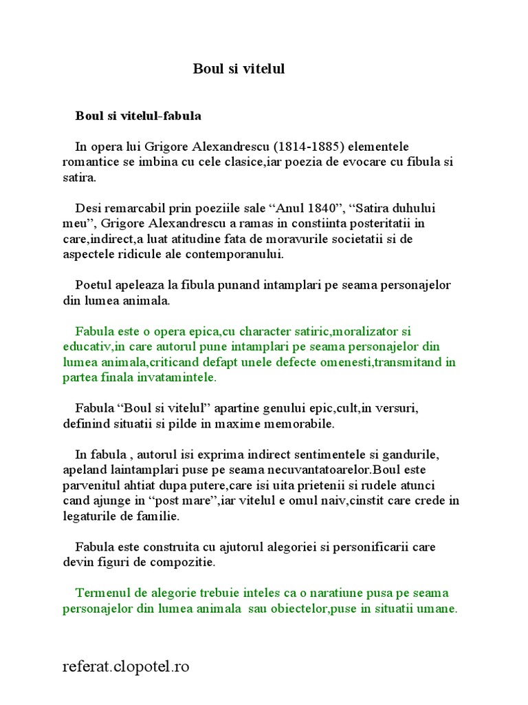 Boul Si Vitelul De Grigore Alexandrescu Argumentare Famouswhy Ro