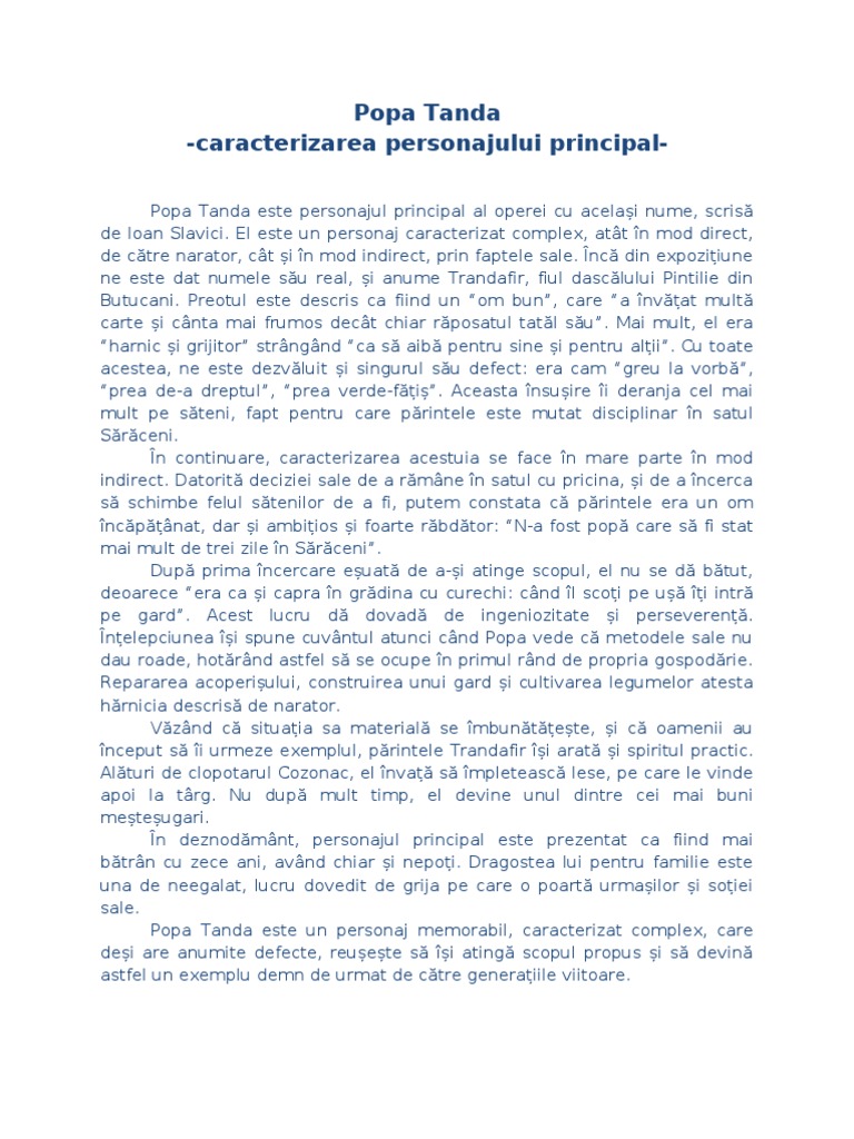 Caracterizarea Lui Popa Tanda Din Opera Popa Tanda De Ioan Slavici 150 250 Cuvinte Brainly Ro