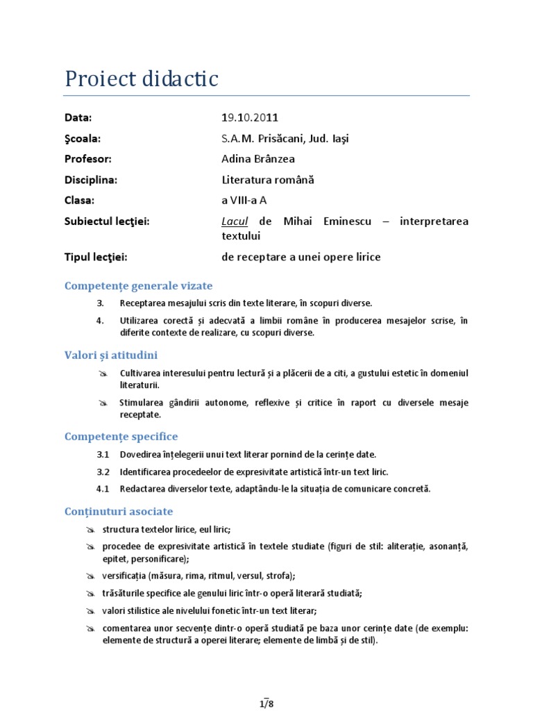 Limba Romana Clasa 8 Manual Cdn4 Romana Clasa 8 L Genul Liric 1 Poezia Liricd Lacul De Mihai Eminescu Lzvorul Noplii De Lucian Blaga Emotie De Toamne De Nichita Sunescu Pdf Document