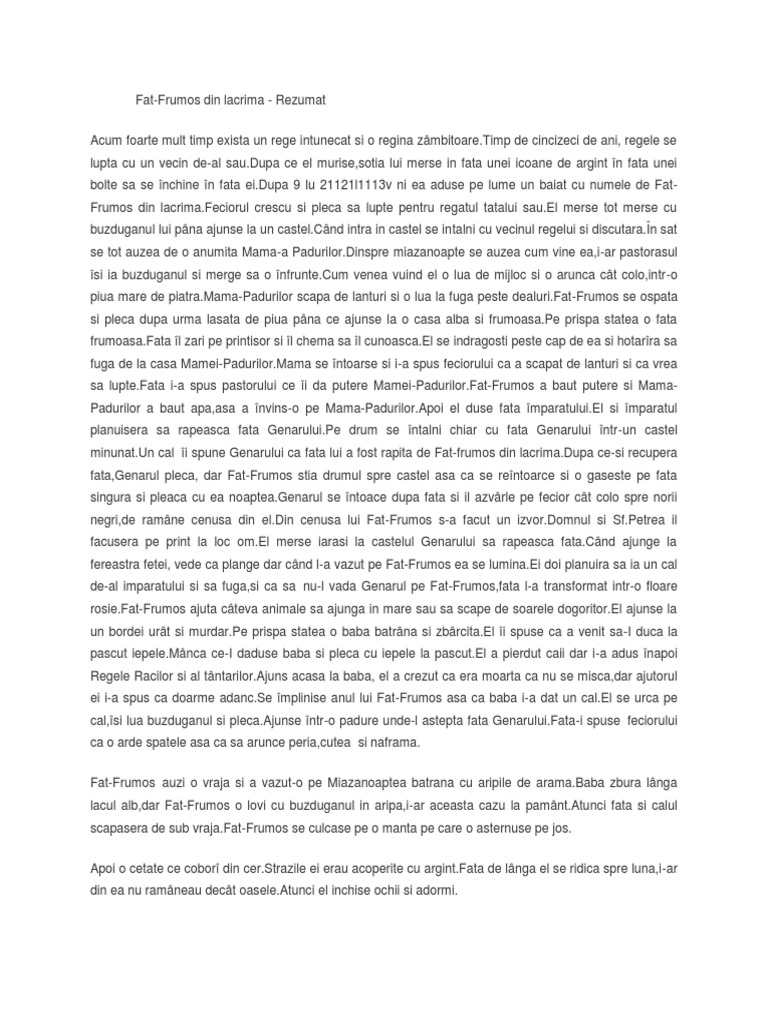 Rezumat Fat Frumos Din Lacrima 182733 Graduo