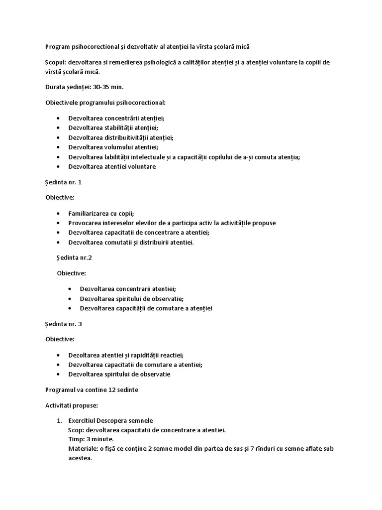 Program Psihocorectional și Dezvoltativ Al Atenției La Virsta școlară Mică