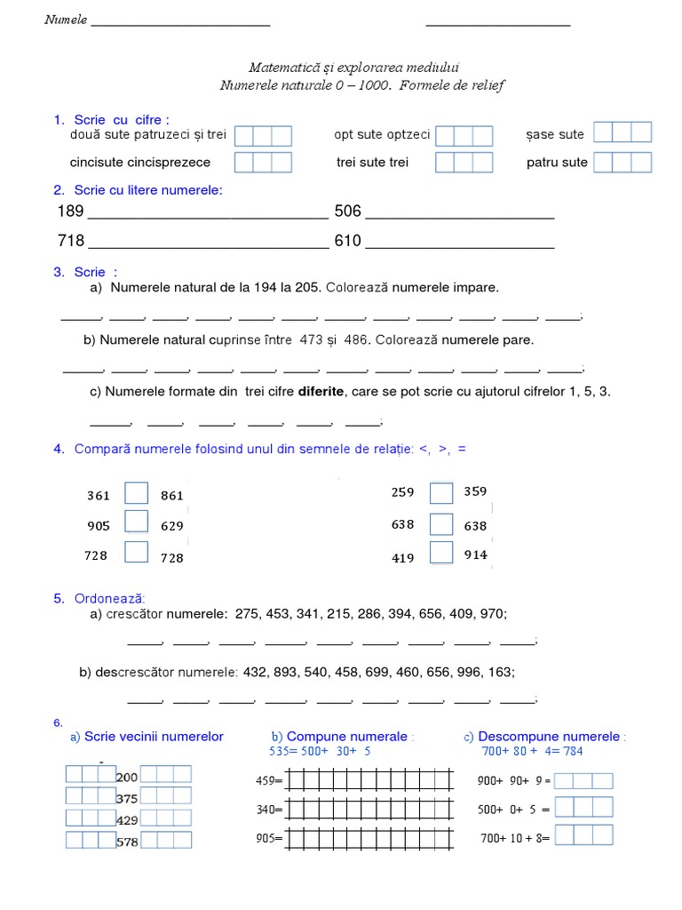 Formarea Citirea Si Scrierea Numerelor Naturale De La 0 La 1000