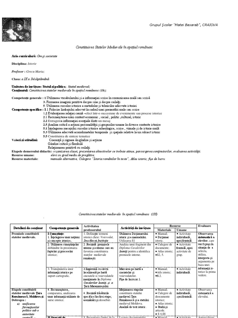 Intemeierea Statelor Medievale ţara Romanească Moldova Dobrogea Schiţa Lecţiei Fisă De Lucru Clasa A Viii A Materiale De Istorie