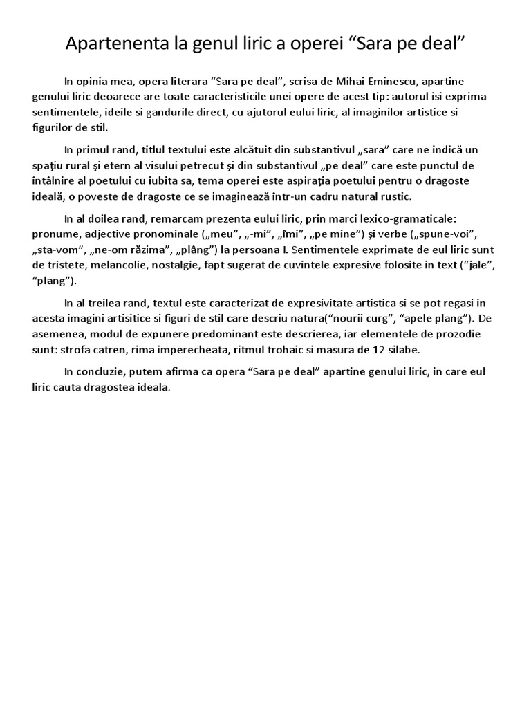Cum Se Argumentează Că O Poezie Este La Genul Liric In Minim 150 De Cuvinte Brainly Ro