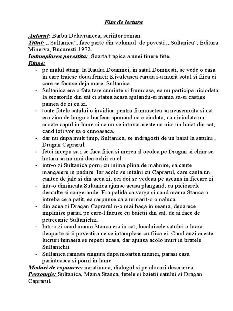 Fisa De Lectura Sultanica