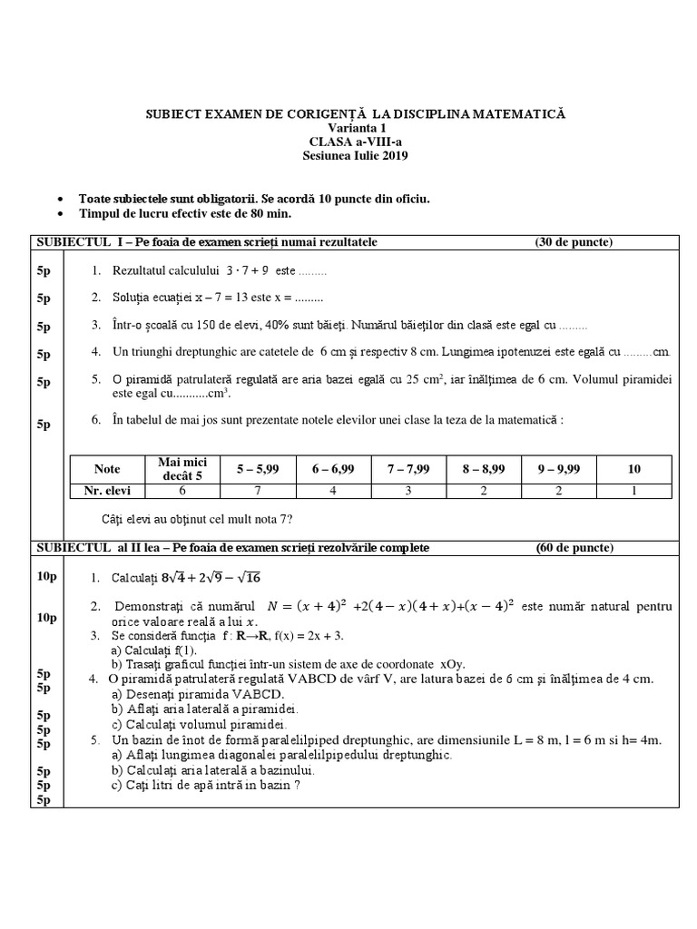 30 de puncte 5p 1. Subiectul i pe foaia de examen scrieţi numai rezultatele. Unghiul format de br şi oe are. Numărul care reprezintă un sfert din 20 este egal cu.