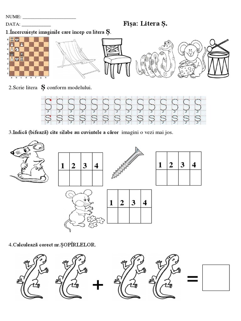 Litera S Soarece Fisa De Lucru