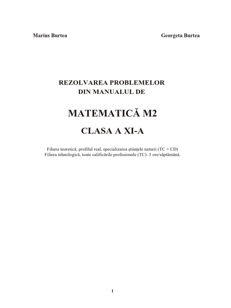 Manual De Matematică Clasa A Xi A M2 Marius Burtea Georgeta Burtea Emag Ro