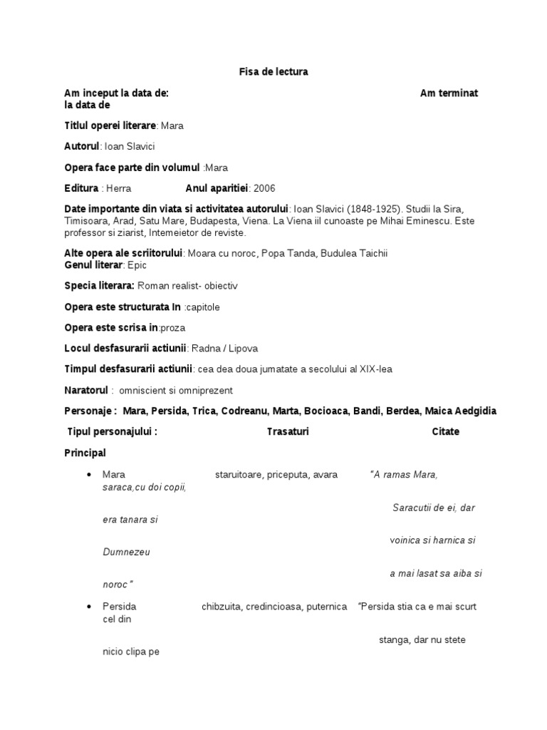 Fisa De Lectura Mara