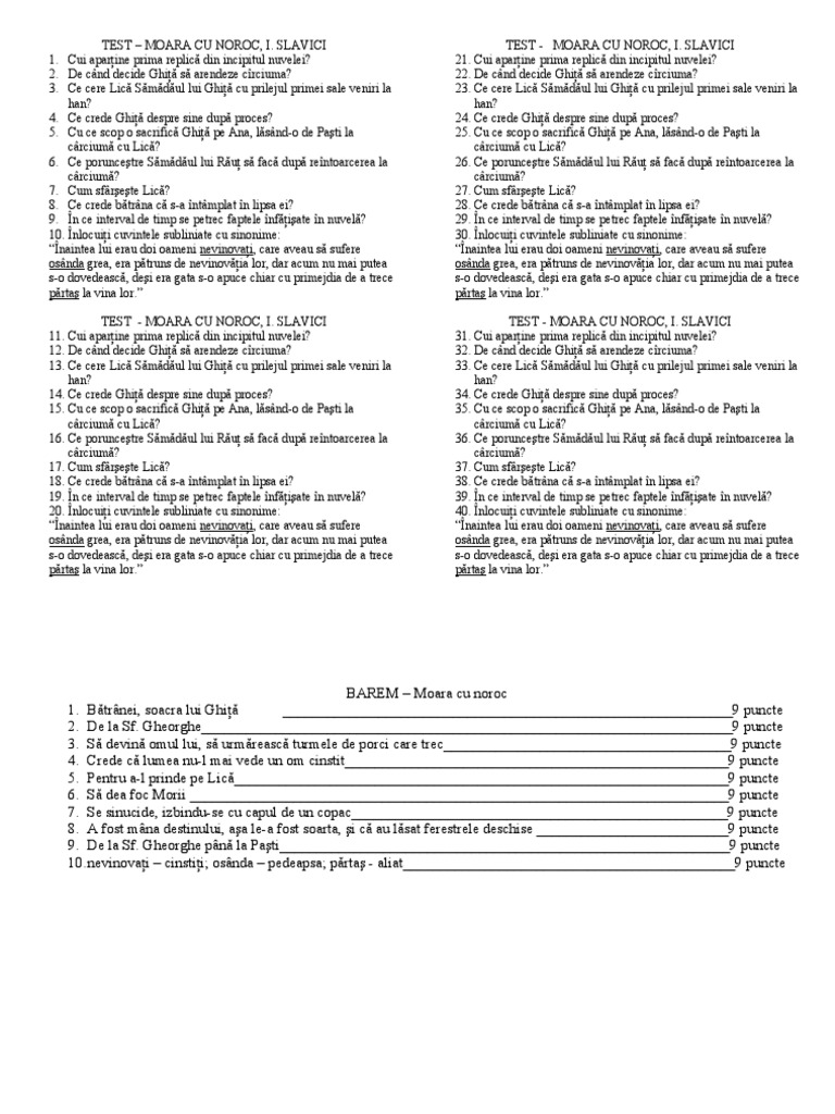 Moara Cu Noroc Test Didactic Ro