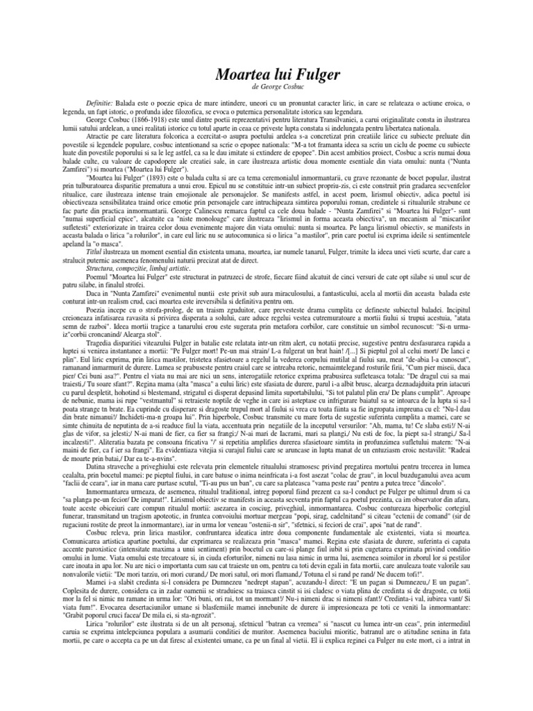 Referat Moartea Lui Fulger George Cosbuc 327847 Graduo