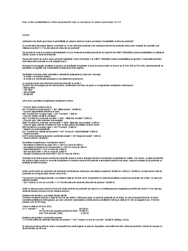 Cum Se Tine Contabilitatea La O Firma De Productie
