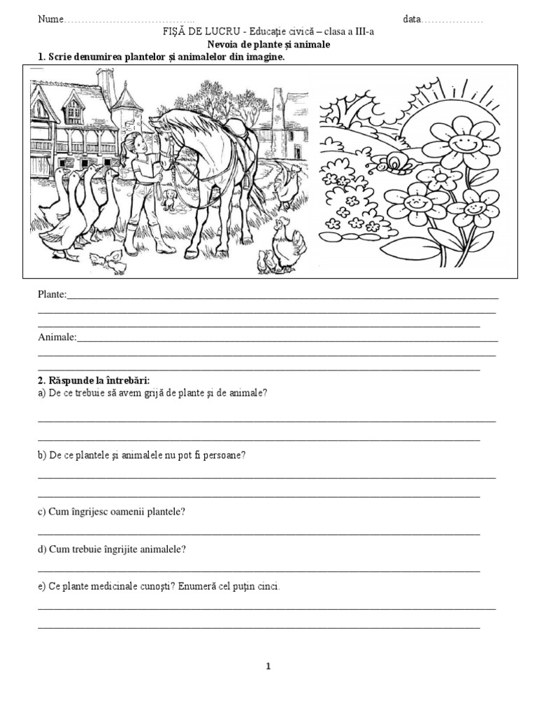 Educatie Civica Nevoia De Plante Si Animale Scolariharnici