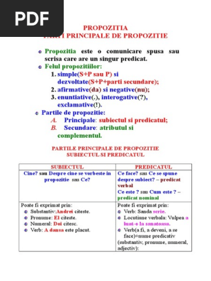 Limba Romană Propoziţia Simplă Si Dezvoltată Părţile De Propoziţie Cl