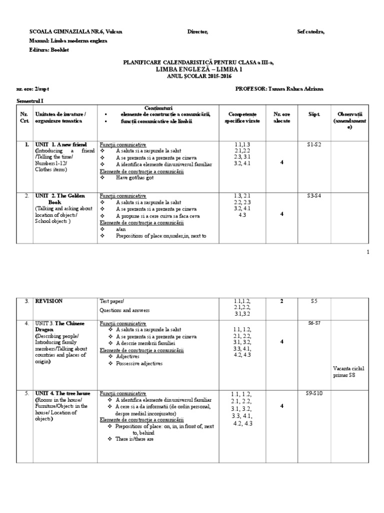 Planificare Clasa A Iiia Limba Moderna Engleza Ed Booklet