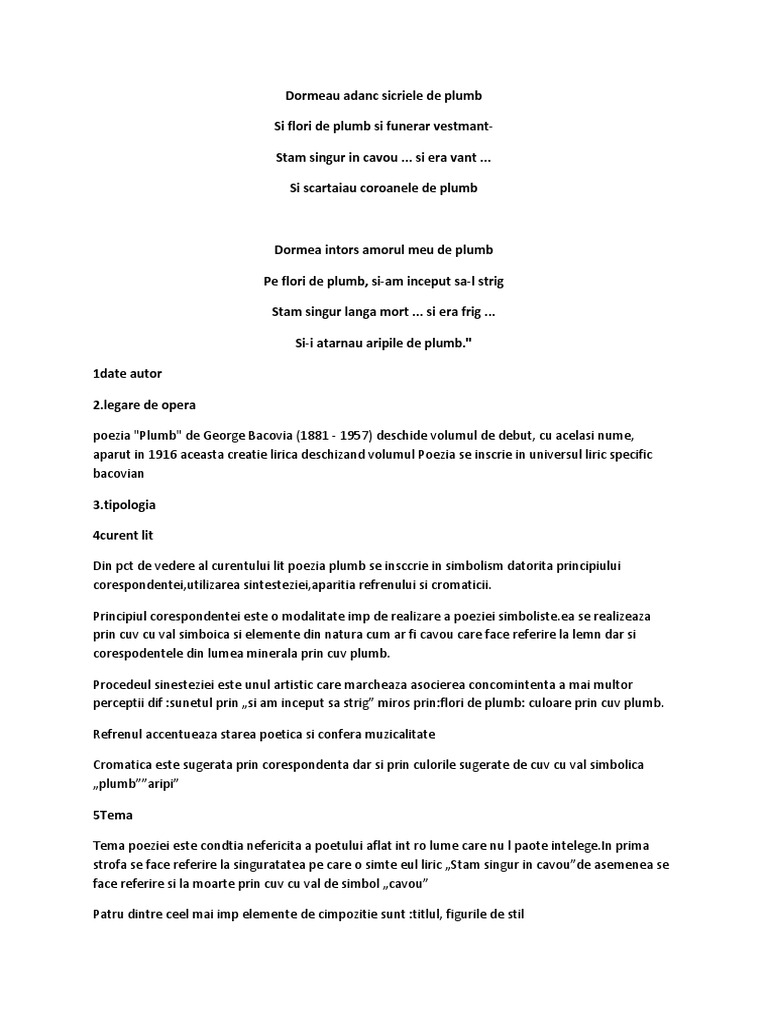 Doc Arta Poetica Simbolista Moderna Plumb George Bacovia Eseu Florin Chiritoiu Academia Edu