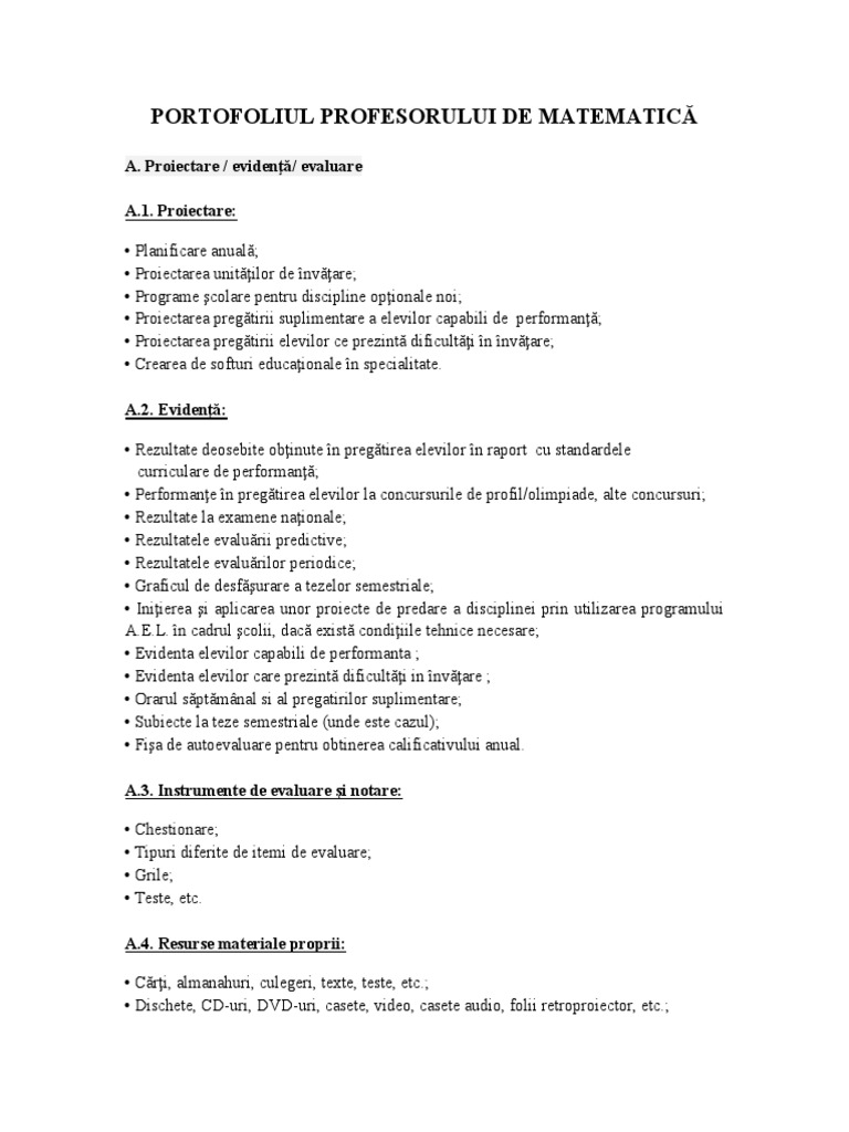 Portofoliul Profesorului 2019 Procedura De Elaborare A Portofoliului Si Fisa De Evaluare
