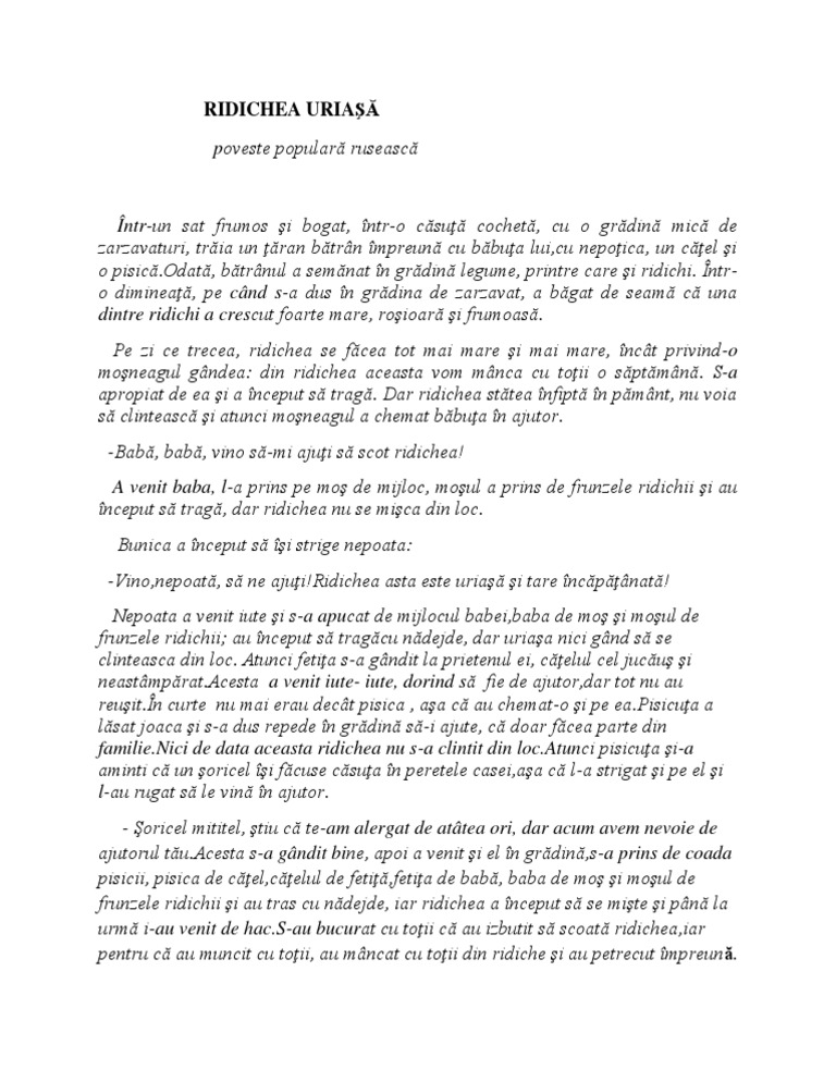Povestea Ridichea Uriasa Text