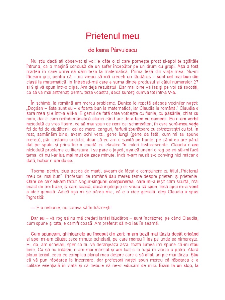 Lucrati In Pereche Delimitați In Fragmente Logice Povestirea Prietenul Meu De Ioana Parvulescu Brainly Ro