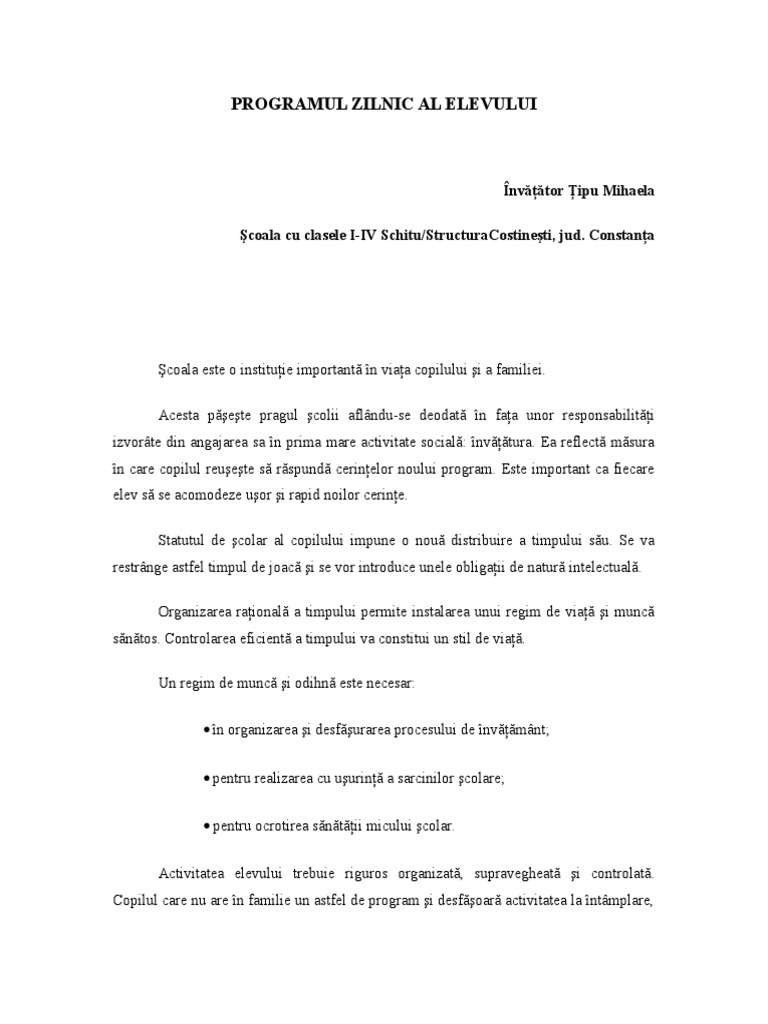 Programul Zilnic De Munca Al Scolarului Mic Copii 6 11 Ani Scolari
