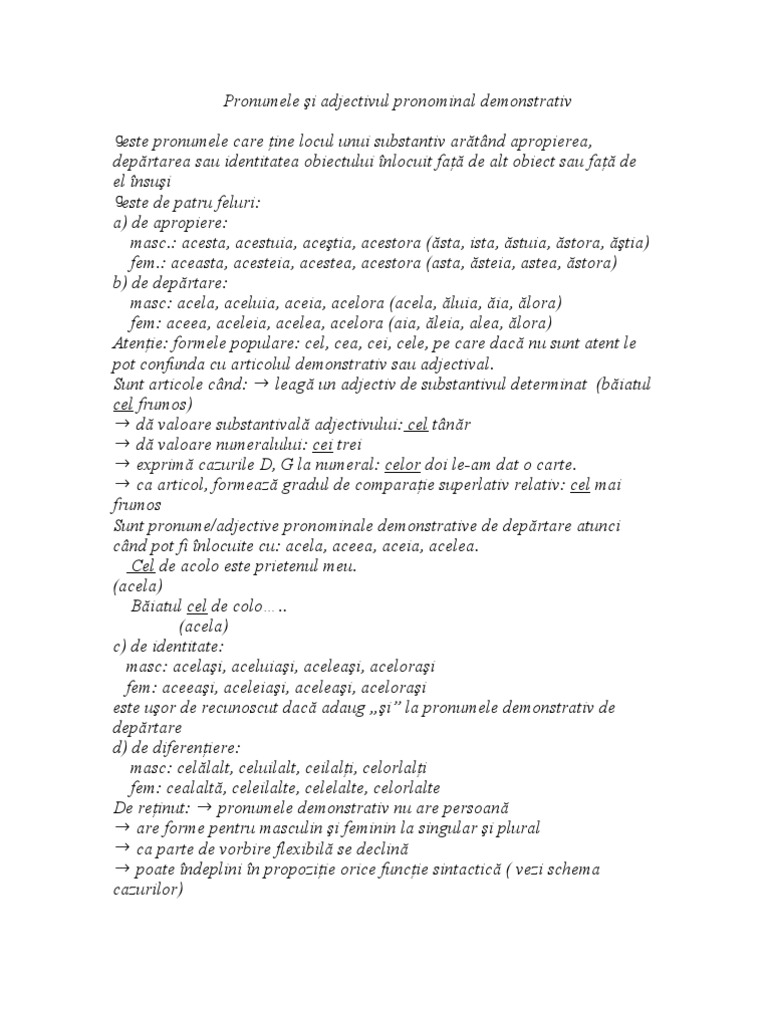 Pronumele Demonstrativ Si Adjectivul Pronominal Demonstrativ