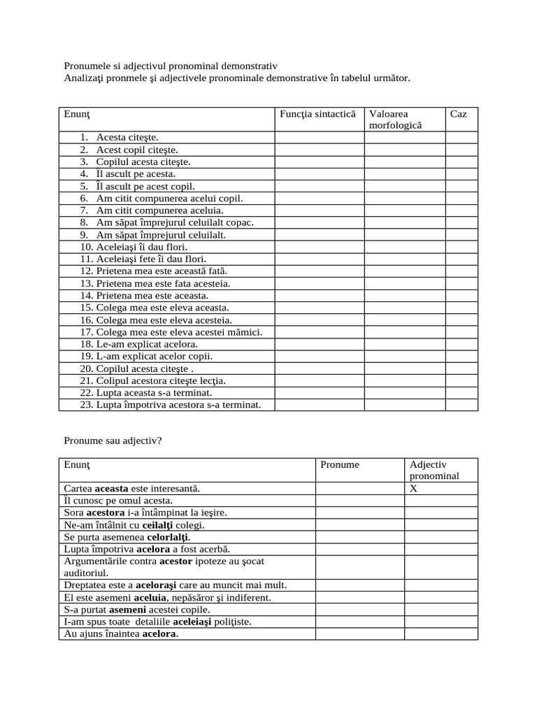 Pronumele Si Adjectivul Pronominal Demonstrativ