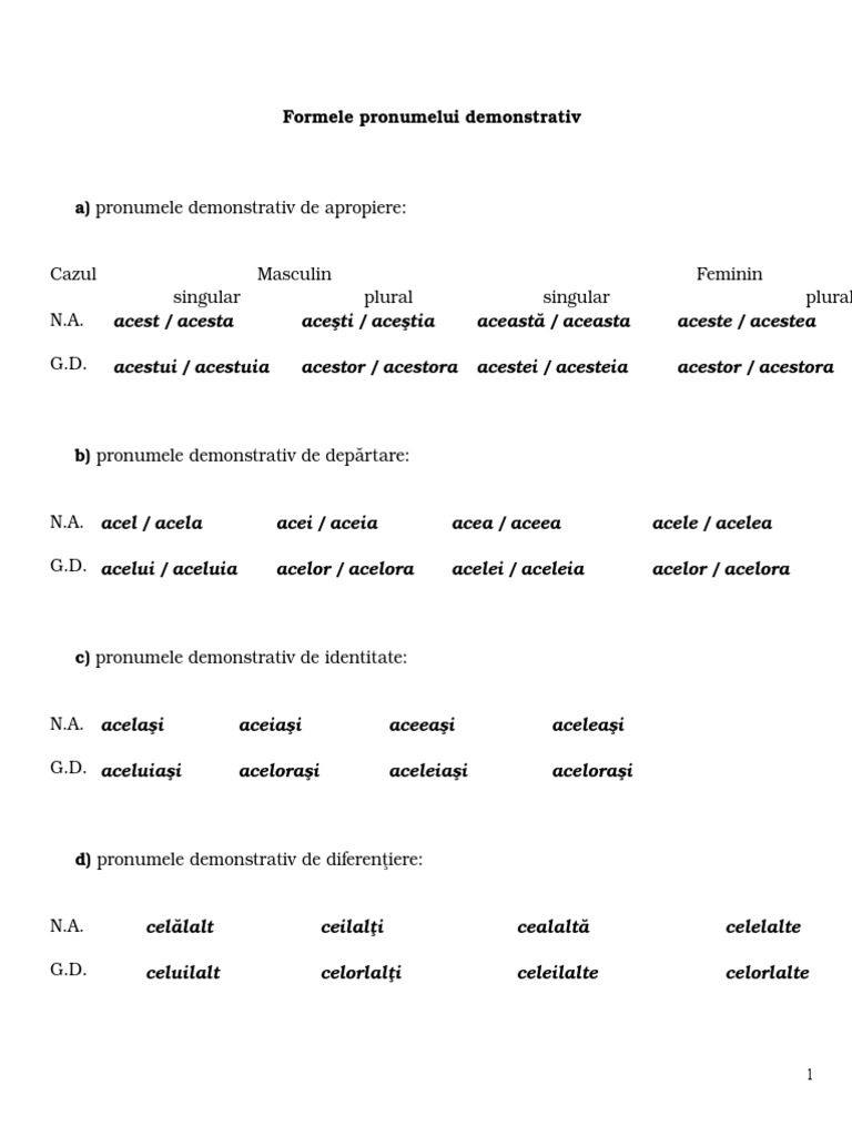 Formele Pronumelui Demonstrativ