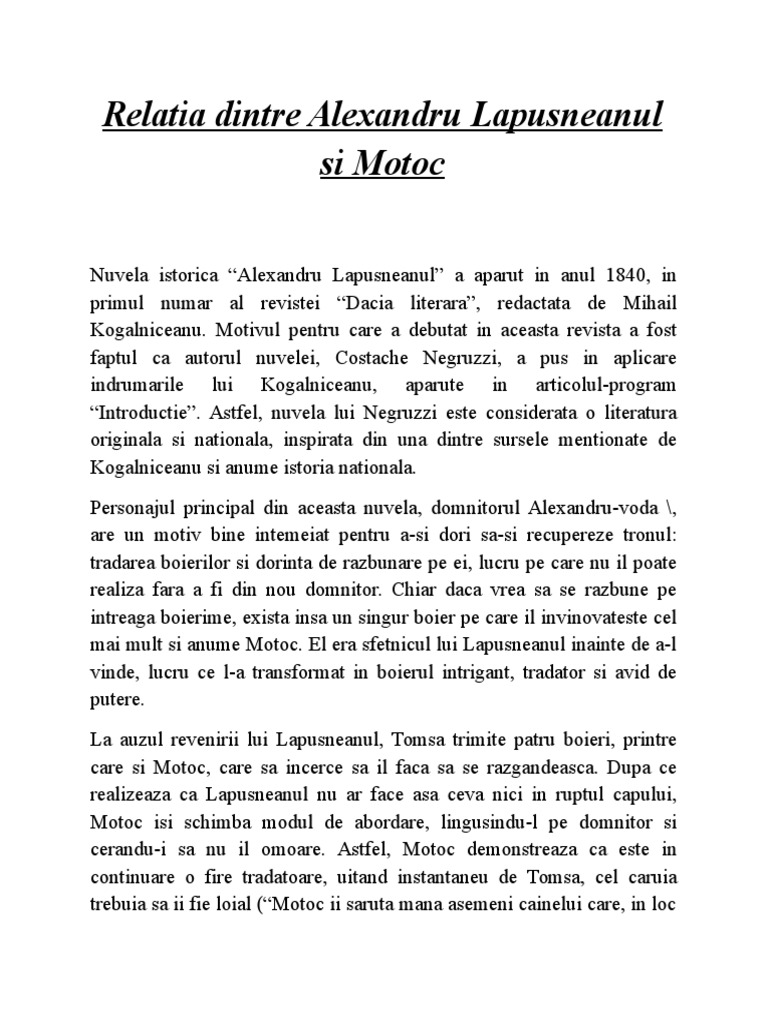 Relatia Dintre Alexandru Lapusneanul Si Motoc