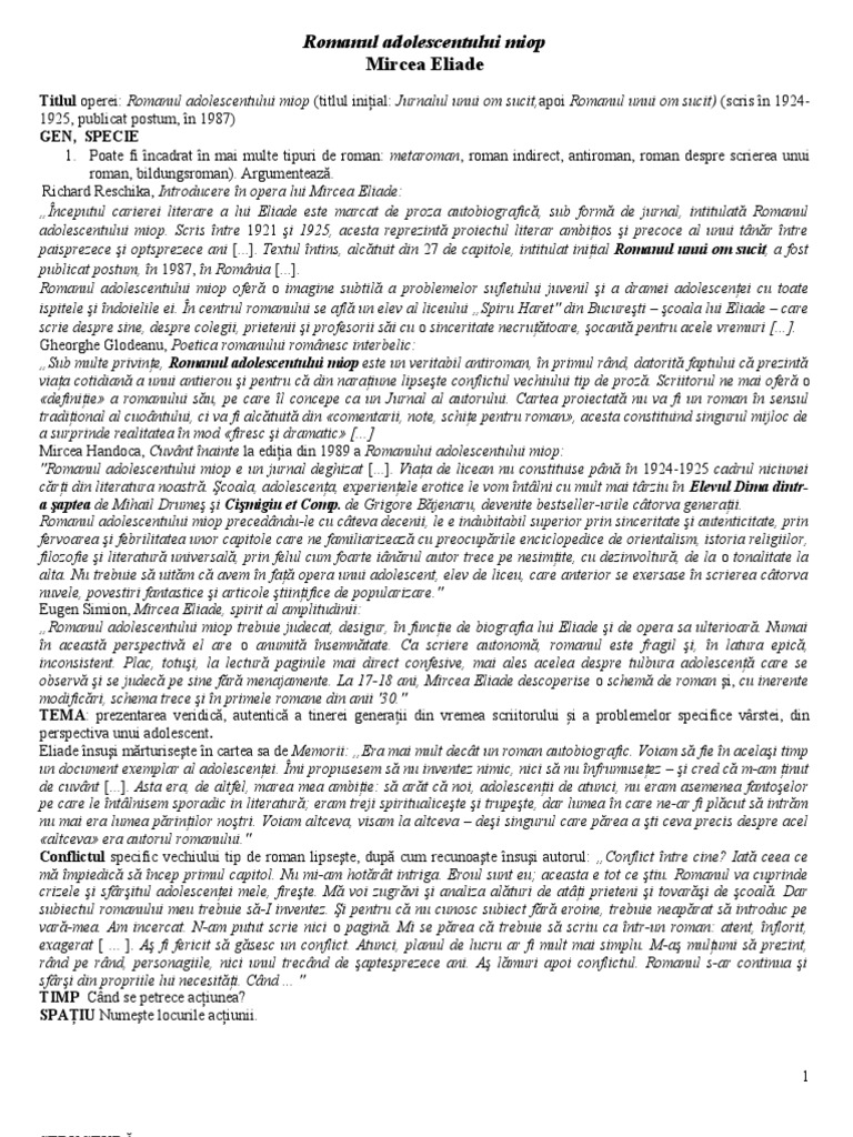Comentariu M Eliade Romanul Adolescentului Miop Doc