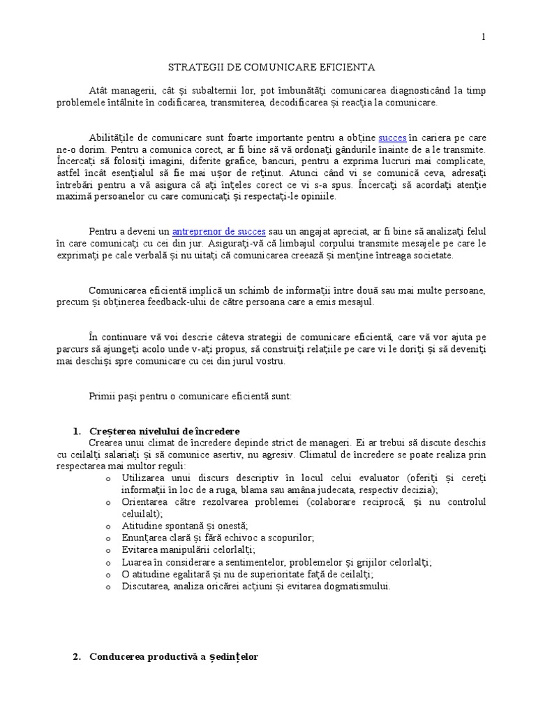 Strategii De Comunicare Eficientă