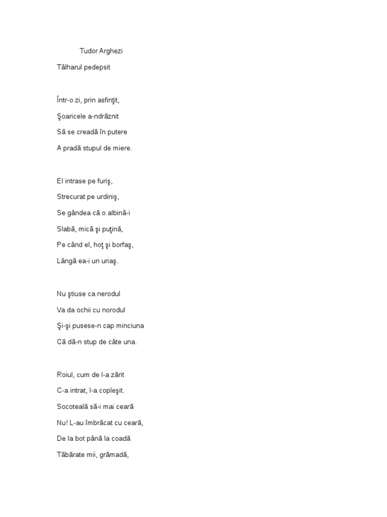 Talharul Pedepsit De Tudor Arghezi Kidibot Knowledge Battles