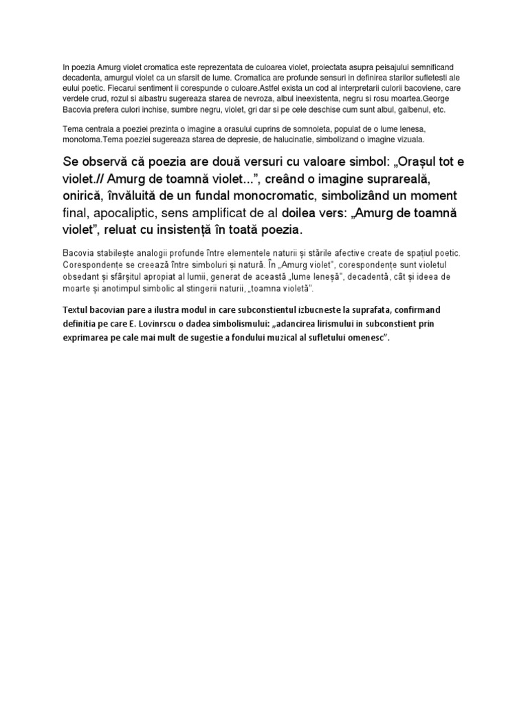 Amurg Violet De George Bacovia Comentariu