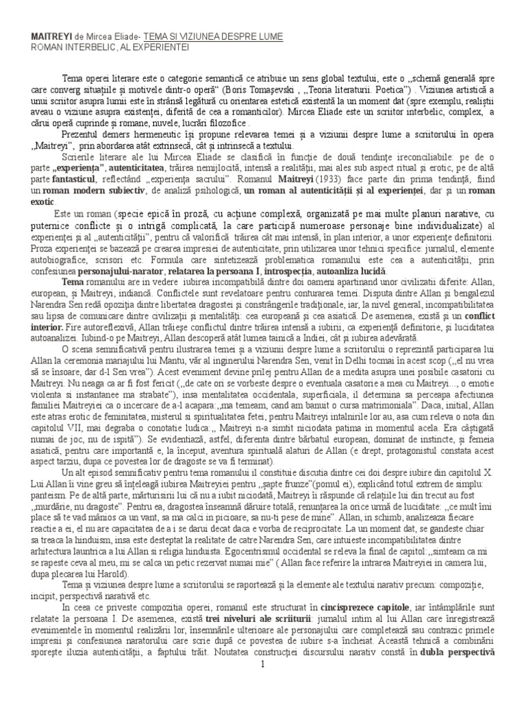 250146140 Eseu Maitreyi De Mircea Eliade Tema Si Viz Despre Lume Doc