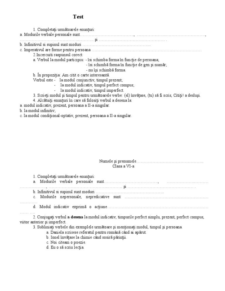 Test Verbul Clasa A Vi A