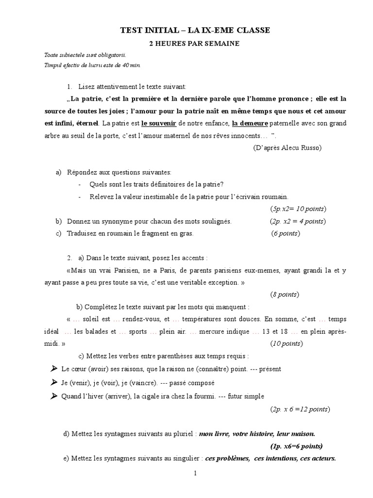 Test De Evaluare Iniţială Clasa A Ix A