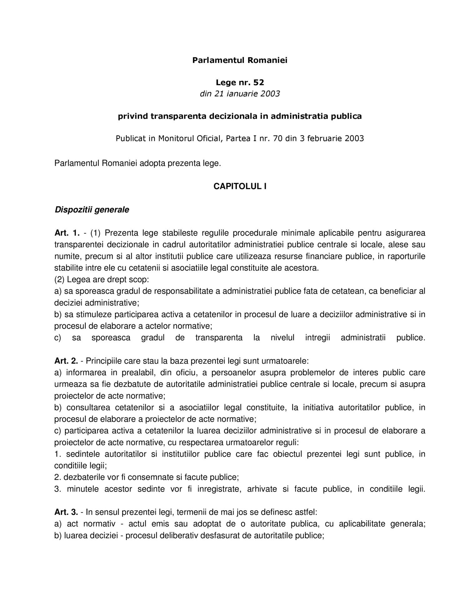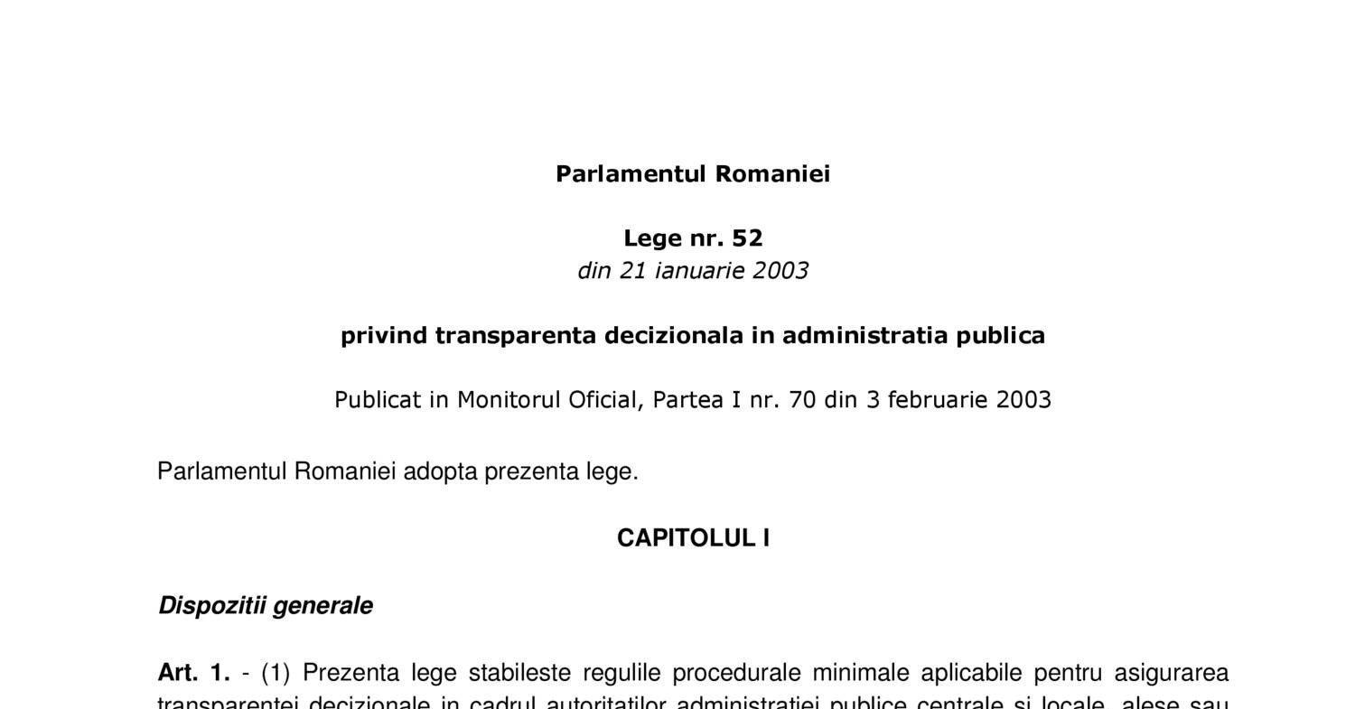 Legea 52 2003 Privind Transparenta Decizionala In Administratia Publica Pdf Docdroid